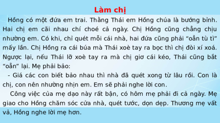 Giáo án Powerpoint Nói và nghe: Kể chuyện: Làm chị Tiếng việt lớp 4 Cánh diều