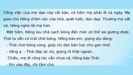 Thái ta vẫn cứ mải chơi bóng. Hồng bảo em, giọng dịu dàng: