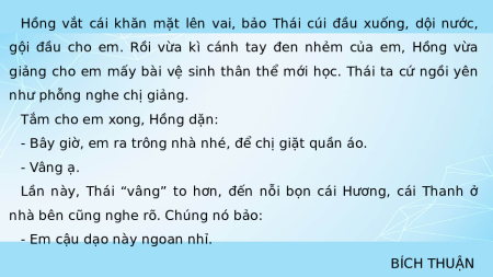 - Vâng ạ. – Thái đáp lại chị, giọng rõ thật ngoan.