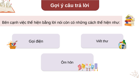 Bên cạnh việc thể hiện bằng lời nói còn có những cách thể hiện như: Gọi điện Viết thư Ôm hôn BÀI 2: