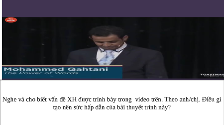 Nghe và cho biết vấn đề XH được trình bày trong video trên. Theo anh/chị. Điều gì