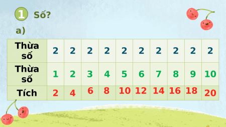 Thừa 1 2 3 4 5 6 7 8 9 10 số Tích 2 4 6 8 10 12 14 16 18 20