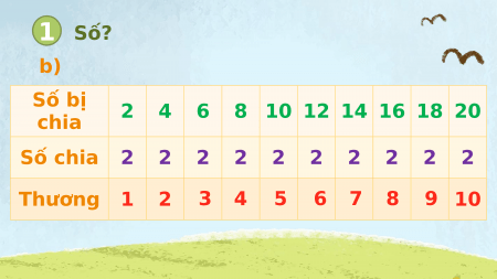 LUYỆN TẬP ÔN TẬP BẢNG NHÂN 2, BẢNG CHIA 2 1 Số? a)