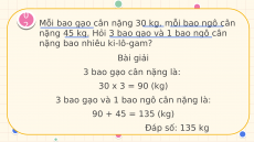 3 bao gạo và 1 bao ngô cân nặng là: 90 + 45 = 135 (kg) Đáp số: 135 kg