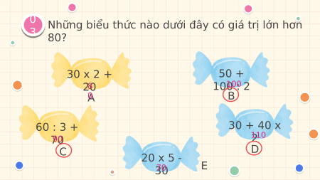 Những biểu thức nào dưới đây có giá trị lớn hơn