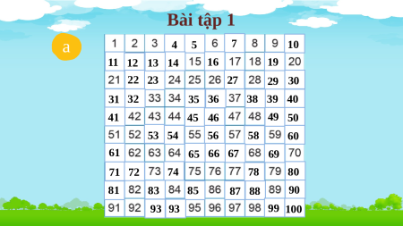 b) Trong Bảng các số từ 1 đến 100, hãy chỉ ra: