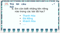 nào trong các bài đã học? • Thanh Hóa • Đà Nẵng • Khánh Hòa • ….
