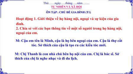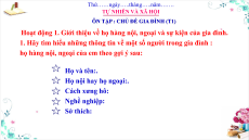 Hoạt động 1. Giới thiệu về họ hàng nội, ngoại và sự kiện của gia đình.