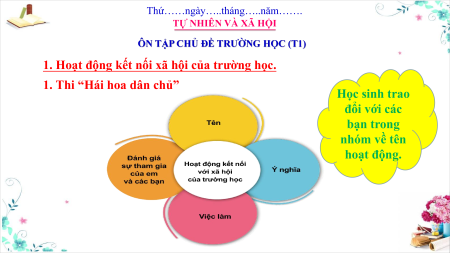 1. Thi “Hái hoa dân chủ” Học sinh trao đổi với các bạn trong nhóm về tên hoạt động.