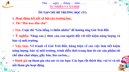 Giáo án Powerpoint Ôn tập: Chủ đề trường học Tự nhiên xã hội lớp 3 Cánh diều