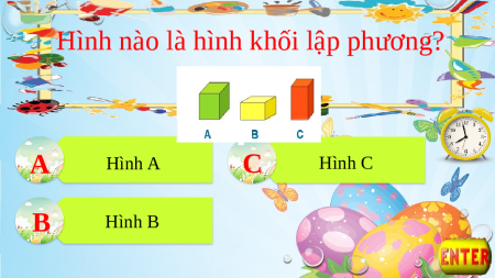 Hình nào là hình khối lập phương? 011234567890 A Hình A C Hình C B Hình B
