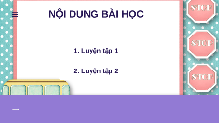CÁC EM ĐẾN TIẾT HỌC HÔM NAY BÀI 36: ÔN TẬP CHUNG NỘI DUNG BÀI HỌC 1. Luyện tập 1 2. Luyện tập 2 LUYỆN TẬP 1 4
