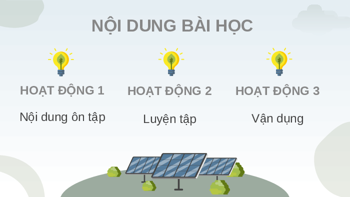 đúng sẽ được cộng 1 điểm, trả lời sai sẽ không có điểm nào. ÔN TẬP CHƯƠNG I NỘI DUNG BÀI HỌC HOẠT ĐỘNG 1 HOẠT ĐỘNG 2 HOẠT ĐỘNG 3 Nội dung ôn tập Luyện tập Vận dụng