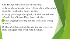 D. Phản ứng thuận nghịch là phản ứng xảy ra theo hai