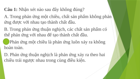 A. Trong phản ứng một chiều, chất sản phẩm không phản