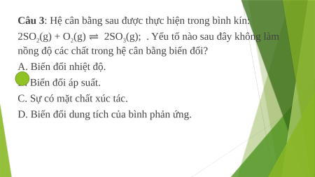 Câu 3: Hệ cân bằng sau được thực hiện trong bình kín:
