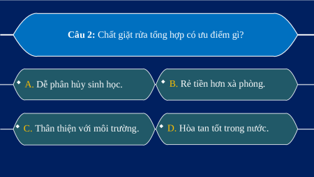 Câu 2: Chất giặt rửa tổng hợp có ưu điểm gì?