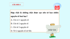 C. Từ 4 nguyên tố trở lên ĐÁP ÁN: D. Từ 1 nguyên tố D CÂU HỎI 2 29 28 27 26 25 24 23 22 21 20 19 18 17 16 15 14 13 12 11 10 09 08 07 06 05 04 03 02 01 HẾT GIỜ