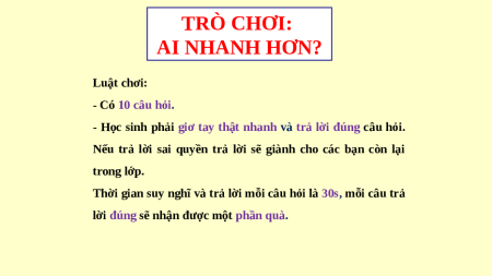 - Học sinh phải giơ tay thật nhanh và trả lời đúng câu hỏi.