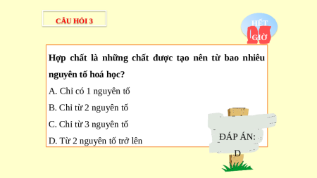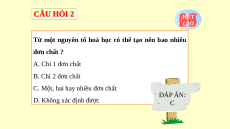 C. Từ 4 nguyên tố trở lên ĐÁP ÁN: D. Từ 1 nguyên tố D CÂU HỎI 2 29 28 27 26 25 24 23 22 21 20 19 18 17 16 15 14 13 12 11 10 09 08 07 06 05 04 03 02 01 HẾT GIỜ