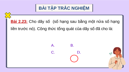 Bài 2.23: Cho dãy số (số hạng sau bằng một nửa số hạng