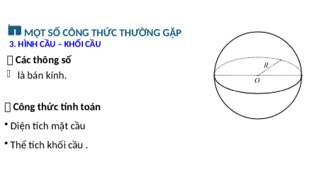 3. HÌNH CẦU – KHỐI CẦU Các thông số là bán kính.