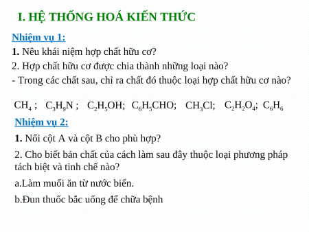 I. HỆ THỐNG HOÁ KIẾN THỨC Nhiệm vụ 1: