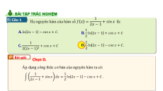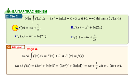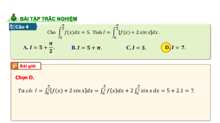 Cho ?(?)?? = 5. Tính ? = ?(?) + 2 ??? ? ?? . 0 0 ? A. ? = ? + . B. ? = ? + ?. C. ? = ?. D. ? = ?. ? Bài giải Chọn D. ? ? ?