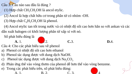 (3) Hợp chất C H CH OH là phenol. 6 5 2