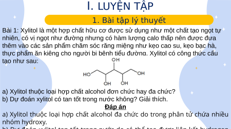 Bài 1: Xylitol là một hợp chất hữu cơ được sử dụng như một chất tạo ngọt tự