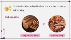 Vì tính dẫn điện của hợp kim kém hơn kim loại cơ bản tạo thành chúng. Tính dẫn điện: < Hợp kim của đồng Kim loại đồng BÀI 23: ÔN TẬP CHƯƠNG 6