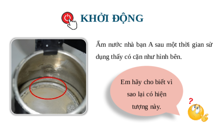 dụng thấy có cặn như hình bên. Em hãy cho biết vì sao lại có hiện tượng này.