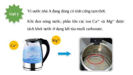 Vì nước nhà A đang dùng có tính cứng tạm thời. Gợi ý
