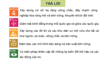 • Em hiểu gì về các mục tiêu phát triển bền vững đó? TRẢ LỜI