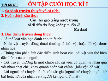 Tiết 68-69: ÔN TẬP CUỐI HỌC KÌ I