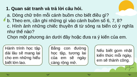 a. Dòng chữ trên mỗi cánh buồm cho biết điều gì?