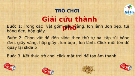 đen, giấy vàng, hộp giấy , lon bẹp , lon lành. Click mũi tên để quay lại slide 5