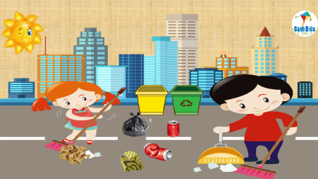 Bước 1: Trong các vật gồm giấy vàng, lon lành ,lon bẹp, túi