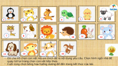 - GV cho HS chọn con vật mà em thích để ra nội dung yêu cầu. Chọn hình ngôi nhà để