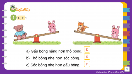 a) Gấu bông nặng hơn thỏ bông. ? Đ