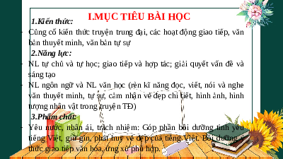 - Củng cố kiến thức truyện trung đại, các hoạt động giao tiếp, văn