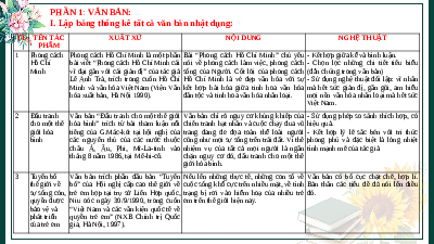 I. Lập bảng thống kê tất cả văn bản nhật dụng: TT TÊN TÁC XUẤT XỨ NỘI DUNG NGHỆ THUẬT PHẨM 1