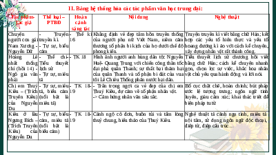 II. Bảng hệ thống hóa các tác phẩm văn học trung đại: