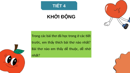 ĐẾN VỚI TIẾT HỌC MỚI NỘI DUNG BÀI HỌC TIẾT 4 TIẾT 5 TIẾT 6 TIẾT 7 TIẾT 4 KHỞI ĐỘNG