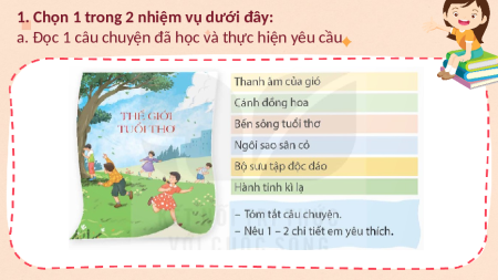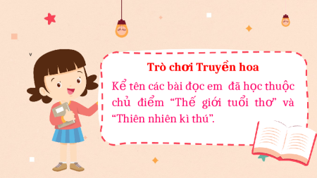 Ôn tập và đánh giá giữa học kì 1 (Tiết 1,2) v Trò ch i ơ Truy n ề hoa Kể tên các bài đ c ọ em đã h c ọ thu c ộ ch ủ đi m ể “Th ế gi i ớ tu i ổ th ” ơ và “Thiên nhiên kì thú”.