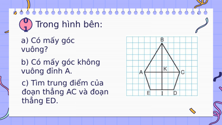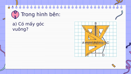 đoạn thẳng AC và đoạn thẳng ED. 0 Trong hình bên: 1 a) Có mấy góc vuông?