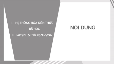 I. HỆ THỐNG HÓA KIẾN THỨC ĐÃ HỌC NỘI DUNG