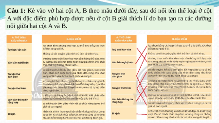 Câu 1: Kẻ vào vở hai cột A, B theo mẫu dưới đây, sau đó nổi tên thể loại ở cột