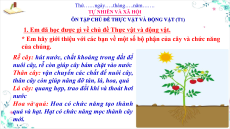 1. Em đã học được gì về chủ đề Thực vật và động vật.