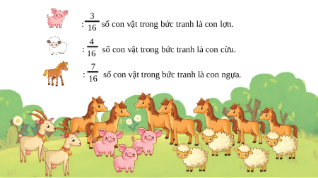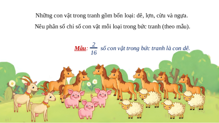 : số con vật trong bức tranh là con ngựa. 16 BÀI 69 ÔN TẬP PHÂN SỐ (Tiết 1)